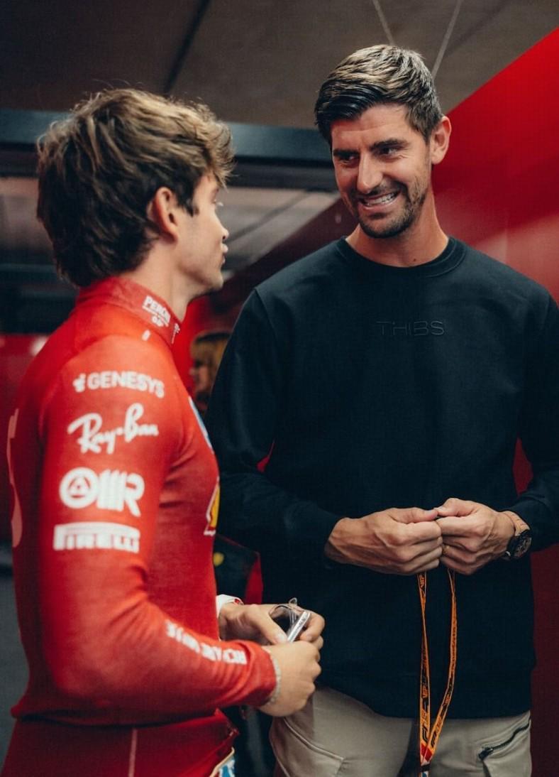 在联赛第三轮结束到国家队集训的间隙,库尔图瓦抽身观看了F1荷兰大奖赛,并探访了法拉利的P房,摄影师还拍下了他与勒克莱尔同框的照片。