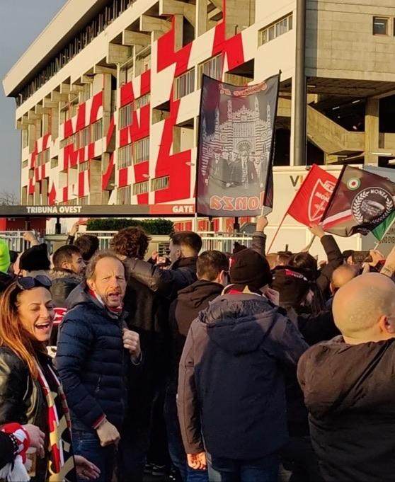 蒙扎死忠球迷的打扮和做派,也和米兰南看台别无二致。整齐划一的黑色着装,旗帜上的图案是蒙扎大教堂剪影,这座哥特式建筑几乎是米兰大教堂的缩小版本。2007年率队夺得欧冠后,安切洛蒂在圣西罗放声歌唱:“啊嘞,米兰,加油拼得胜利,我们不会抛弃你。”15年后,当蒙扎历史上初次升上意甲,球迷们将相同的旋律送给了丹麦前锋于特凯尔,他是球队闯过附加赛升级的头号功臣。“叮咚,叮咚,我来到竞技场,维京人又进了球!”场外,一些球迷干脆带着维京海盗的帽子入场——在意大利的其他球场,你或许不会看到这样的场面。